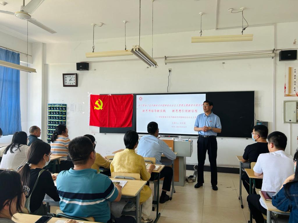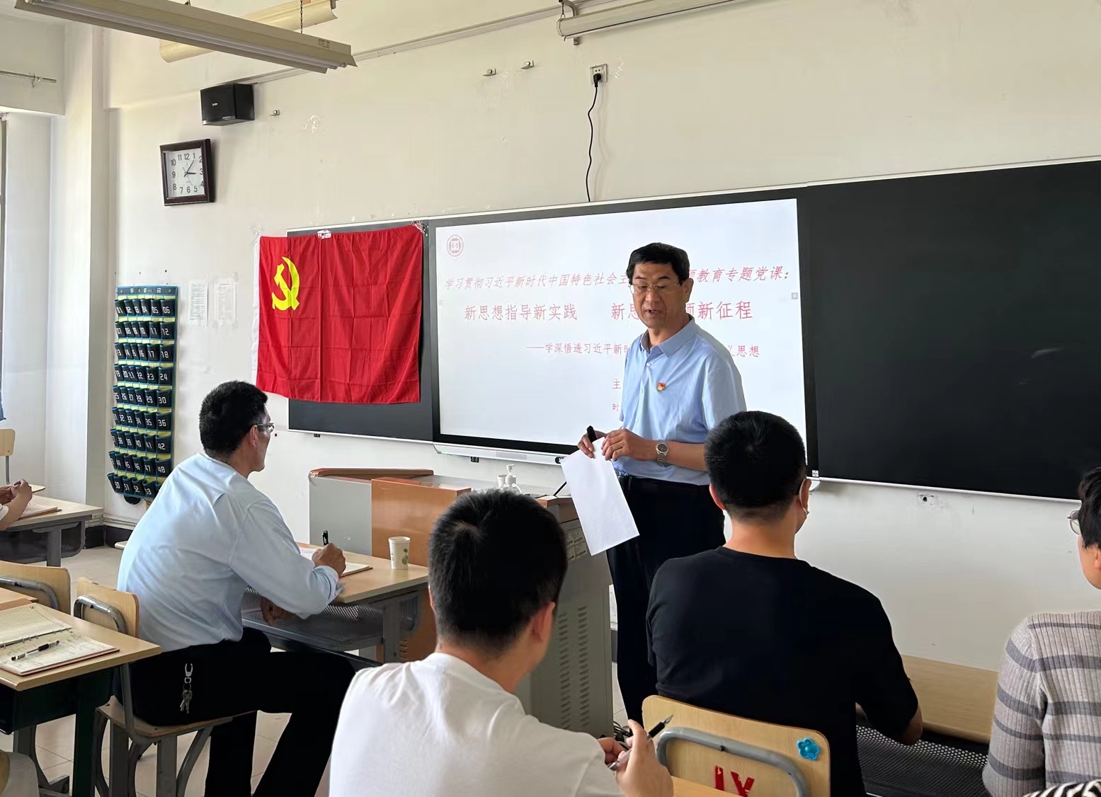 为贯彻落实学校党委关于主题教育“三个一百”专题党课的安排部署,5月24日下午,太阳网集团tcy8722在理工楼2401教室组织开展学习贯彻习近平新时代中国特色社会主义思想主题教育专题党课教育活动,学院全体师生党员参加,学校党委主题教育第七指导组组长刘书玉到场指导。