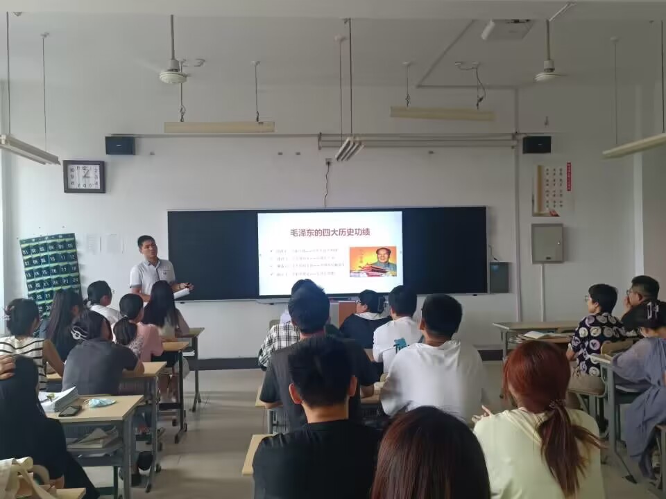 王友郡向全体党员介绍了毛泽东同志的生平经历,以此加深同志们对毛泽东及毛泽东思想的了解,从而更加深刻地领悟其精神内涵。从毛泽东四大历史伟绩这一方面,带领大家深刻学习毛泽东思想。王友郡向各位同志提出了“毛泽东是怎样成为中共领袖的?”这一问题,师生党员们就这一问题展开了讨论,分别从毛泽东的七大“缺点”及富田事变对毛泽东的挑战等方面给出了不同答案。