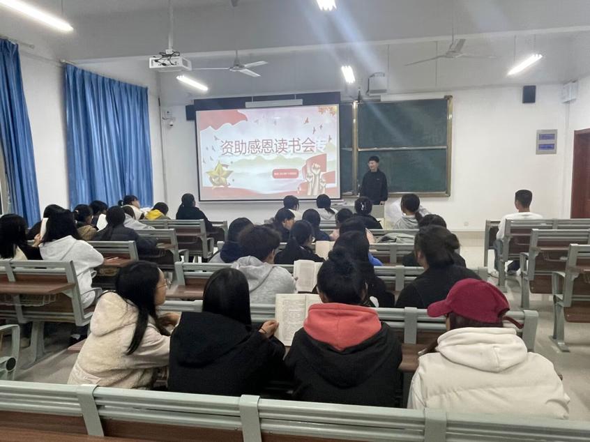 11月7日在崇德楼4405教室举办“书香激扬青春,资助伴你成长”资助读书会。首先学生们共同阅读《平凡的世界》、《当下的力量》、《惊蛰》等励志书籍部分片段,对书籍内容展开激烈讨论。随后几位学生代表根据自己的兴趣,分别向大家分享自己的读书心得体会。同学们相互分享观点、交换思想,每位同学的发言都引起其他同学的共鸣。受助学生纷纷表示,他们未来将以实际行动回报社会,努力实现自身的价值。
