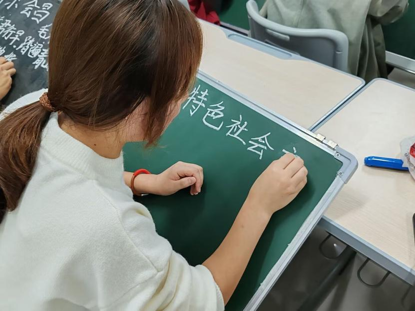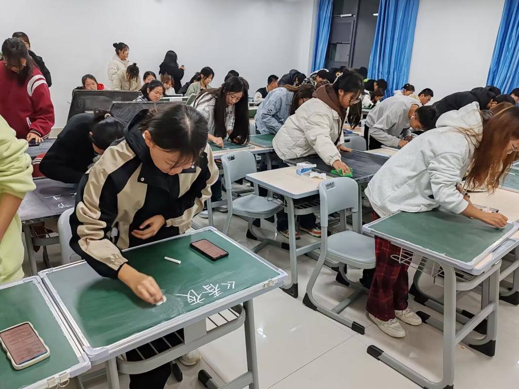 11月9日,太阳网集团tcy8722在崇德楼4404教室举办“风雨润桃李,黑白画春秋”粉笔字书写大赛,2021级、2022级、2023级地理科学专业全体师范生参与。
