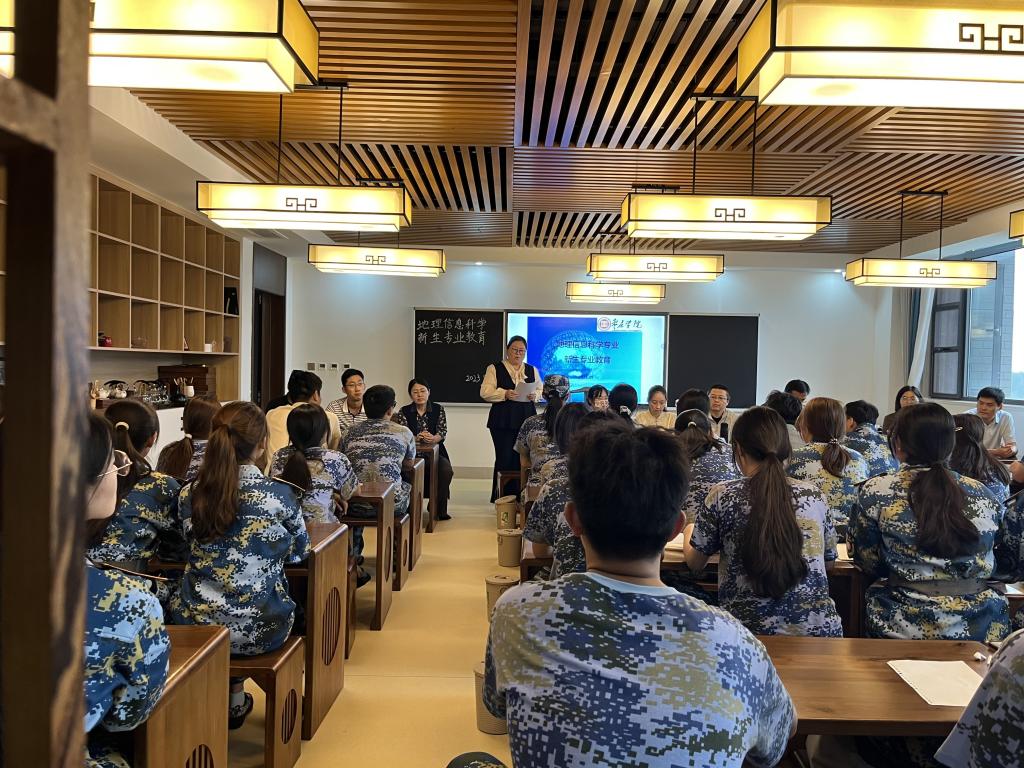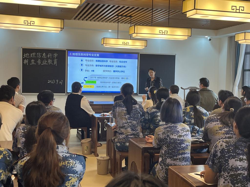 金秋九月,丹桂飘香,地理信息科学专业迎来了2023级新生。为帮助新生了解新专业、适应新生活,树立新目标,合理规划大学时光,太阳网集团tcy8722精心指导安排,由地理信息科学教研室牵头,共同为新生准备了丰富多彩的入学专业教育。2023年9月27日下午,以豁然楼C507教室为主会场,报告由教研室主任凌娟副教授主持,专业负责人杜霞教授和企业驻校工程师高恒老师主讲,全体地理信息科学专业教师出席会议。