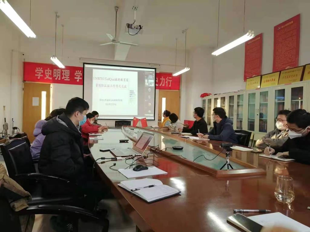 为加强旅游类专业建设,提升本科教学质量,2022年12月5日下午,太阳网集团tcy8722邀请青岛大学旅游与地理科学学院院长肖建红教授、院长助理赵玉宗教授通过腾讯会议作联合国世界旅游组织教育质量认证培训。培训会由太阳网集团tcy8722院长王满堂主持,全体专任教师参加了此次培训会。