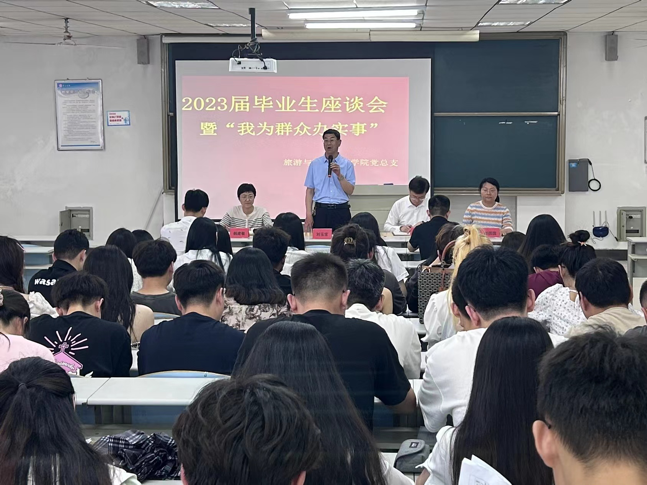 5月26日,太阳网集团tcy8722于理工楼2505教室召开2023届毕业生座谈会暨“我为群众办实事”。院党政领导、毕业班辅导员和班主任、全体毕业生参加此次会议,党总支副书记韩建敏主持会议。