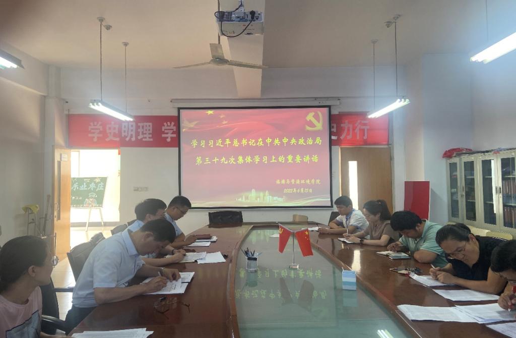 6月15日,我院党总支理论学习中心组在理工楼2514会议室集体学习习近平总书记在中共中央政治局第三十九次集体学习上的重要讲话精神。党总支书记刘玉宝主持学习并讲话,学院党政领导、党总支委员参与了学习。