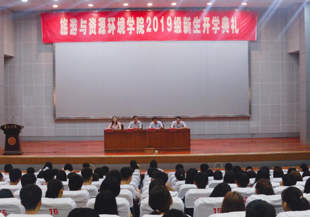 在开学典礼上,党总支书记陆德国致辞,他代表旅资学院全体师生对来自五湖四海的新同学表示热烈的欢迎和衷心的祝贺,并提出三点期望:一要志存高远,脚踏实地;二要勤奋好学,刻苦锻炼;三要立德修身,全面发展。随后赵全科院长生动地介绍了学院光辉的办学历程以及学院办学目标,号召同学们热爱太阳集团tcy8722,热爱太阳网集团tcy8722,热爱自己的专业,发奋图强,努力进取,争取大学生活有新的更大的收获,不辜负老师的谆谆教导和家长的辛劳养育。彭文彬博士作为教师代表发言,并希望同学们以用于奋斗的精神状态和乐观向上的人生态度,自强不息,顽强拼搏,努力成为新时代的人生赢家。在校学生黎靖雯代表在校生分享了自己大学的学习体会和生活感悟;2019级新生丁堃泳芳代表新生表达了努力提升自我、不忘求知成才的心声。