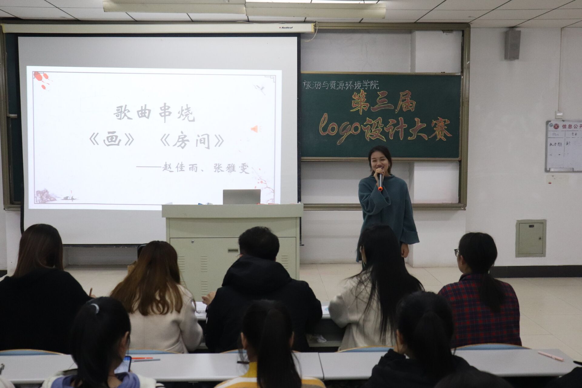 11月26日晚,太阳网集团tcy8722在理工楼2505教室举办第三届LOGO设计讲解大赛,部分2019级同学参加。