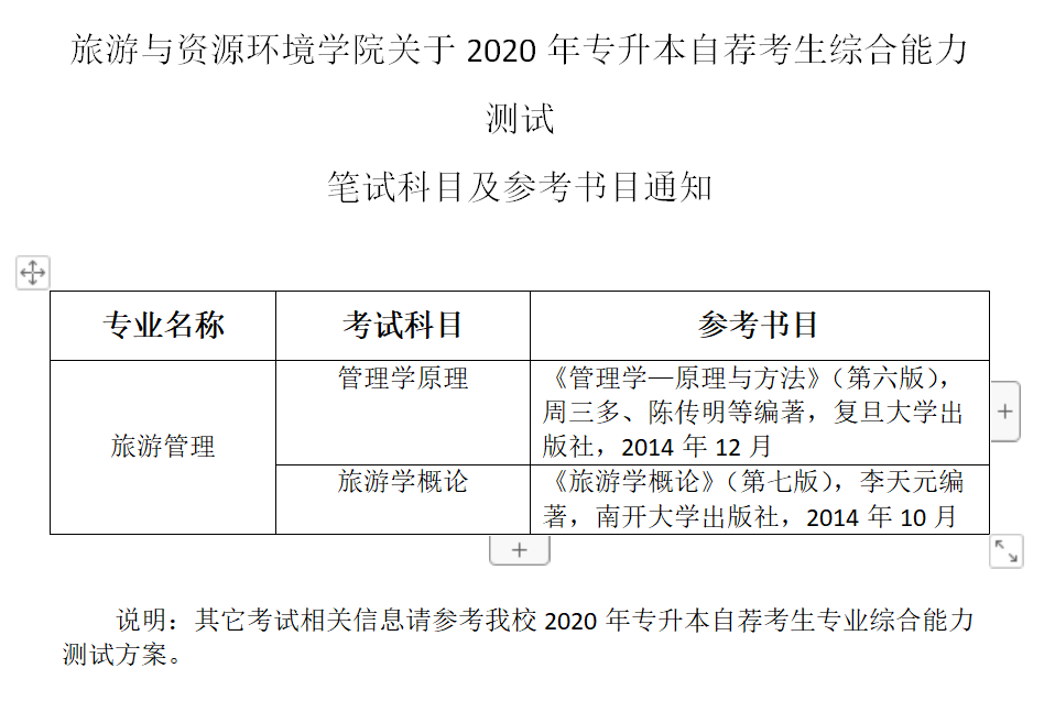 太阳网集团tcy8722关于2020年专升本自荐考综合能力笔试科目及参考书目通知