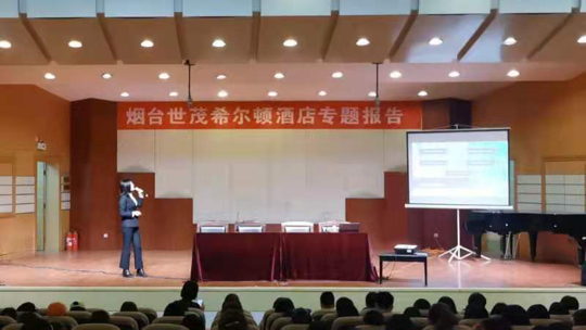 3月31日下午2点,在我校音乐厅举办烟台世茂希尔顿酒店专题报告,我院部分专任教师、2020级和2017级旅游管理、酒店管理的学生聆听了此次报告。报告会上,人力总监何芳介绍了酒店的悠久历史,以及希尔顿在中国的发展,并介绍了目前招聘岗位信息。营运总监刘飞龙分享自己在酒店行业的经历,鼓励学生积极投身酒店行业,实现人生价值。