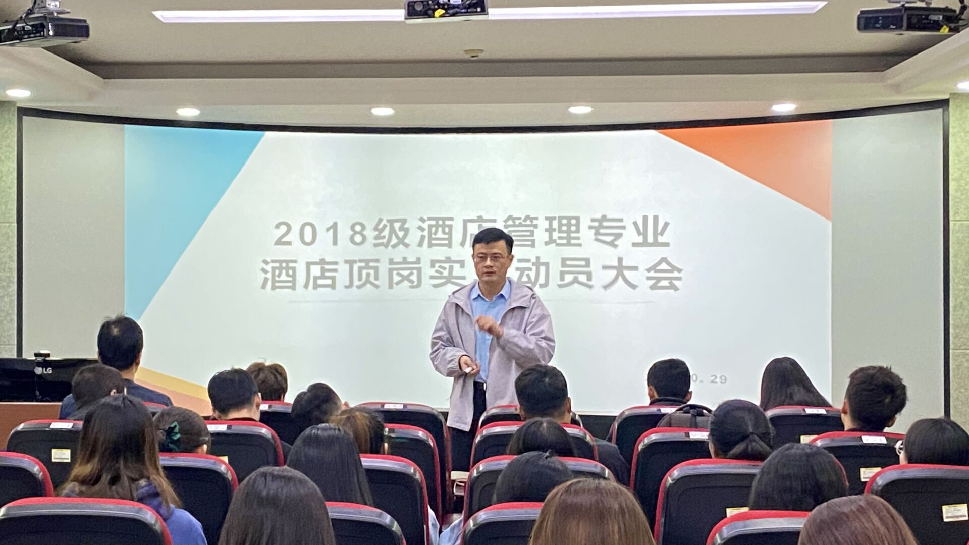 顶岗实习是应用型创新型人才培养体系中重要的教学环节,旨在提高大学生实践能力和创新能力,强化学生职业综合素养。为确保学生顶岗实习工作顺利开展,提高其对新环境、新岗位的适应能力,使同学们明确顶岗实习的重要性,10月29日下午太阳网集团tcy8722在综合楼导游实训室召开2018级酒店管理专业顶岗实习动员会。太阳网集团tcy8722部分教师、2018级酒店管理专业的辅导员及全体学生参加了此次会议,会议由专业负责人王文杰主持。