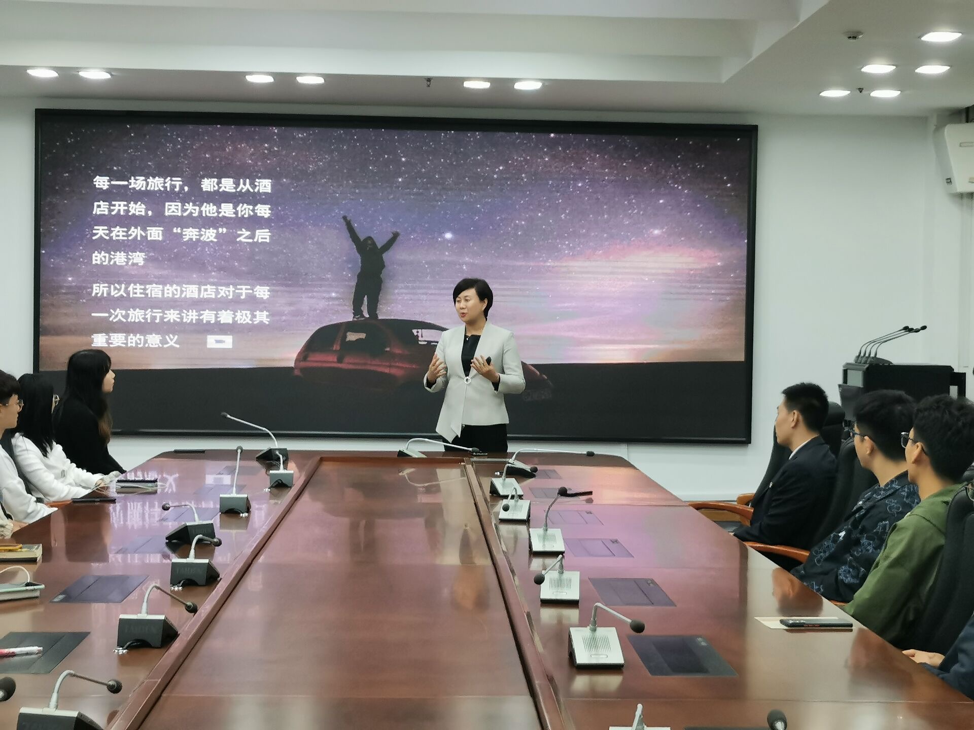 白璐女士从酒店行业前景、未来发展方向、酒店企业文化等方面作了精彩讲授,为同学们的职业规划指出了方向。同时介绍了企业的历史沿革与公司机构、企业文化。通过白露女士的讲授,同学们对酒店业有了初步的认识,纷纷表示要充分利用学校的优质教学资源,努力学习专业知识,将专业与自身职业规划紧密结合。