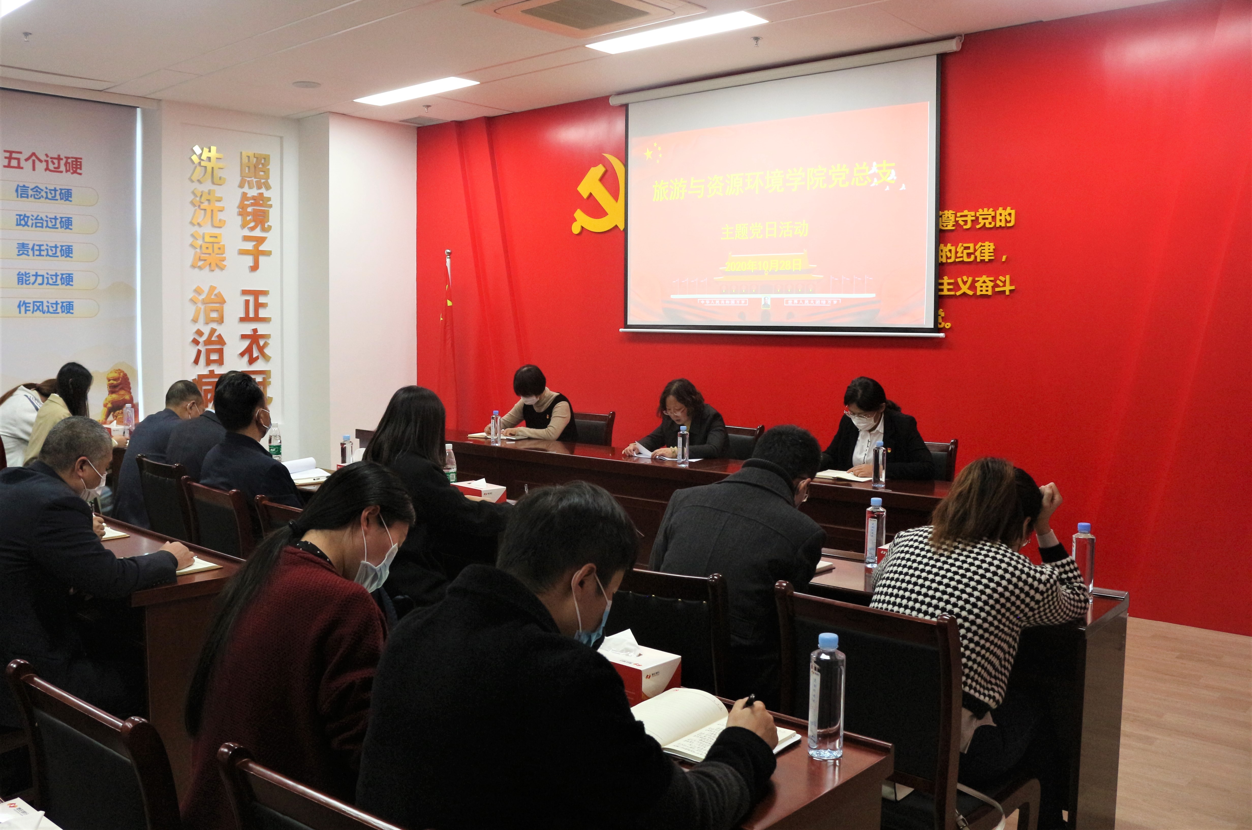 最后,全体党员在枣庄银行电教室进行了主题党日学习。