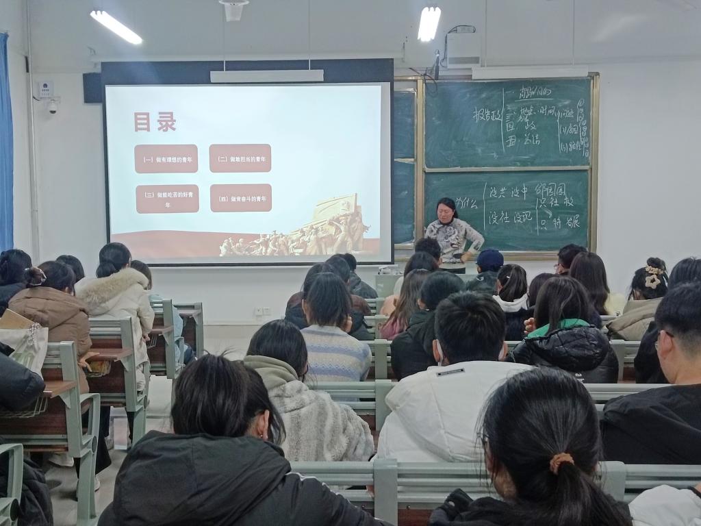活动伊始,邵园园围绕习近平总书记关于青年工作的重要思想,结合具体事例,从做有理想的青年、做敢担当的青年、做能吃苦的青年、做肯奋斗的青年四个方面进行讲述,带领同学们深入学习新时代好青年的内涵,引导同学们自觉坚定听党话、感党恩、跟党走的青春步伐。邵园园强调,当代青年要成为担当民族复兴大任的时代新人,必须立大志、明大德、担大任,不断提升思想道德素质和法治素养,争做新时代好青年。