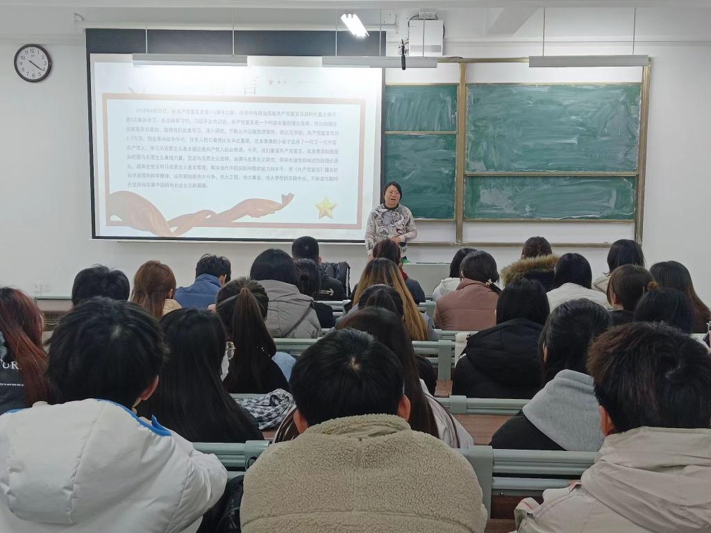 活动伊始,邵园园以“永恒的明灯”为主题,结合具体事例,从《共产党宣言》的发表背景、时代价值、意义与实践等方面进行讲解,带领学生干部深入学习《共产党宣言》蕴含的科学原理和科学精神,引导学生掌握马克思主义的立场、观点和方法,不断提高马克思主义理论素养。邵园园强调,重温《共产党宣言》,就是要深刻领悟和把握马克思主义真理力量,坚定马克思主义信仰,保持先进性和纯洁性的理论源头,谱写新时代中国特色社会主义新篇章。