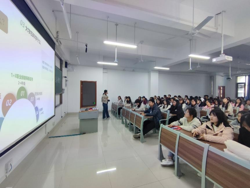讲座从“认识我们的学院”、“了解我们的专业”、“大学四年学什么”、“未来干什么”等多个角度切入,让同学们对学校、对学院、对自己的专业有了更加全面真实的了解。旅游与环境资源学院作为学校的重要院系之一,近年来在学科建设、师资队伍和科研实力等方面取得了显著成就。学院旨在培养旅游行业的管理型人才,注重学生的时间技能的培养,因此旅游管理专业设置了丰富多样的特色课程,包括与智慧旅游相关的大数据课程,实训课程开设了茶艺、酒水等实训,同时安排了不同阶段的社会实习实训的课程,让学生能够更好的在实践中学习和成长。杜宜臻老师还通过往届学生的实例介绍了旅游管理的专业前景和就业现状,使得同学们对旅游管理专业现状和展望有了更深一步的了解与认识。