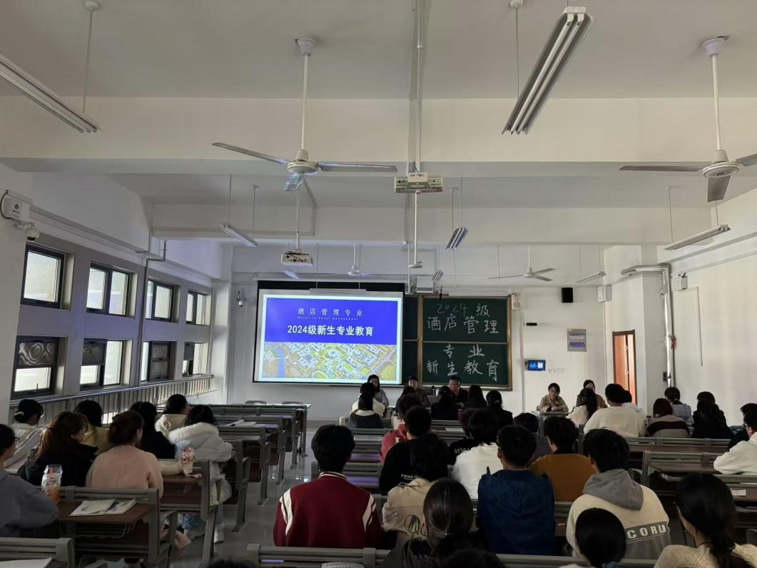 11月6日下午,太阳网集团tcy8722在崇德楼316教室为2024级酒店管理专业学生作专业教育,活动由酒店管理教研室主任王唯主讲,部分专任教师、班主任及2024级全体酒店管理专业新生聆听了报告。