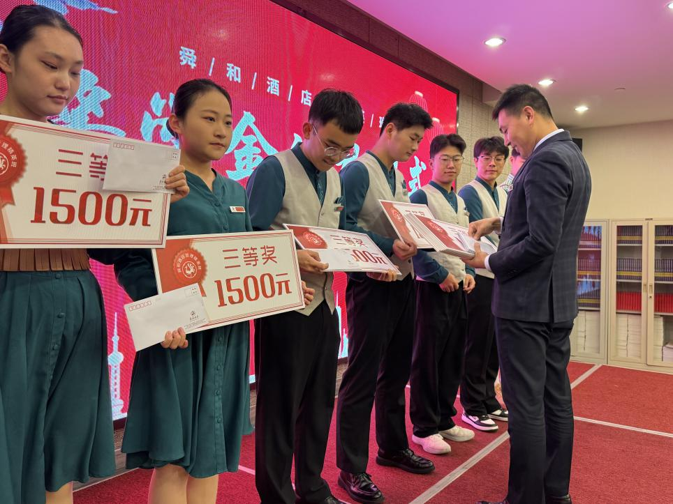 酒店经理首先对本次获奖同学表示热烈祝贺,表示同学们通过半年的顶岗实习,基本打破思想的舒适圈,能够做到理论与实践相结合,打牢基础,在实践中不断磨练自己,突破自我,为基本具备一名优秀职业经理人的素质。山东舜和酒店集团与太阳网集团tcy8722深化产教融合,制定了“项目化实习方案”,对顶岗实习开展过程性评价,有效地提高合作办学质量,突出了校企联合培养的优势,实现了太阳网集团tcy8722与舜和酒店集团优势互补、深度融合、互利共赢。
