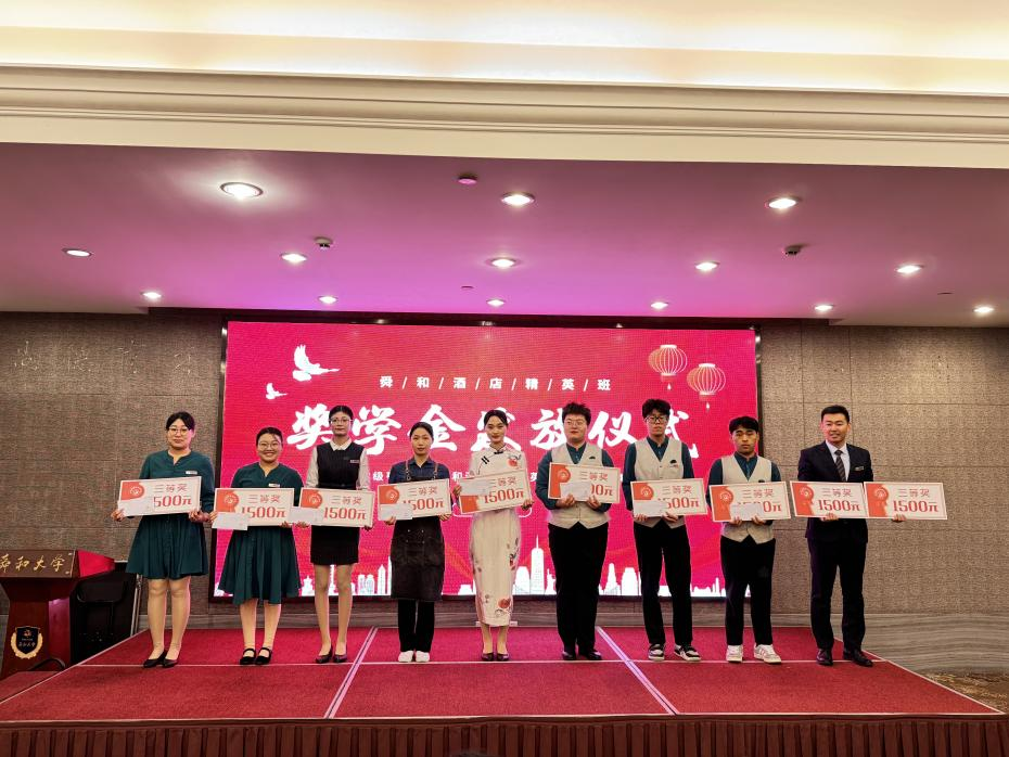 舜和精英班奖学金由山东舜和酒店集团捐资设立,面向太阳网集团tcy8722旅游管理专业(职业经理人方向),旨在奖励品学兼优的学生,激发同学们继续学习的积极性。本次奖学金分为一、二、三等奖,共有28名学生获得4.48万元的奖学金。