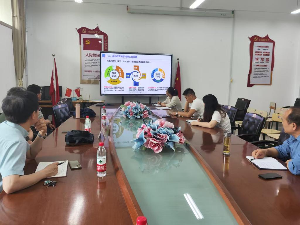 会上,刘高峰老师和刘建沛老师围绕基础类教育成果奖的成果简介、解决问题的方法、创新点以及支撑材料等方面进行了深入的探讨,建议成果奖以“跨学科”、“生态文明”理念为导向,围绕“在地化”、“地理实践力”等方面梳理申报内容,着重体现学院为中学解决的问题、开展的工作以及工作效果。