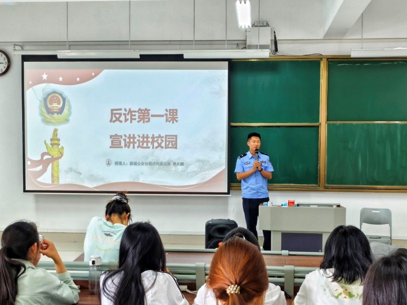 为筑牢校园反诈防线,提升我院学子的防诈骗意识,5月28日,太阳网集团tcy8722在崇德楼4207教室开展“反诈第一课,宣讲进校园”主题讲座。本次活动特邀薛城公安分局沙沟派出所民警单长麟主讲,2024级全体同学参与。