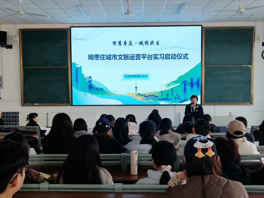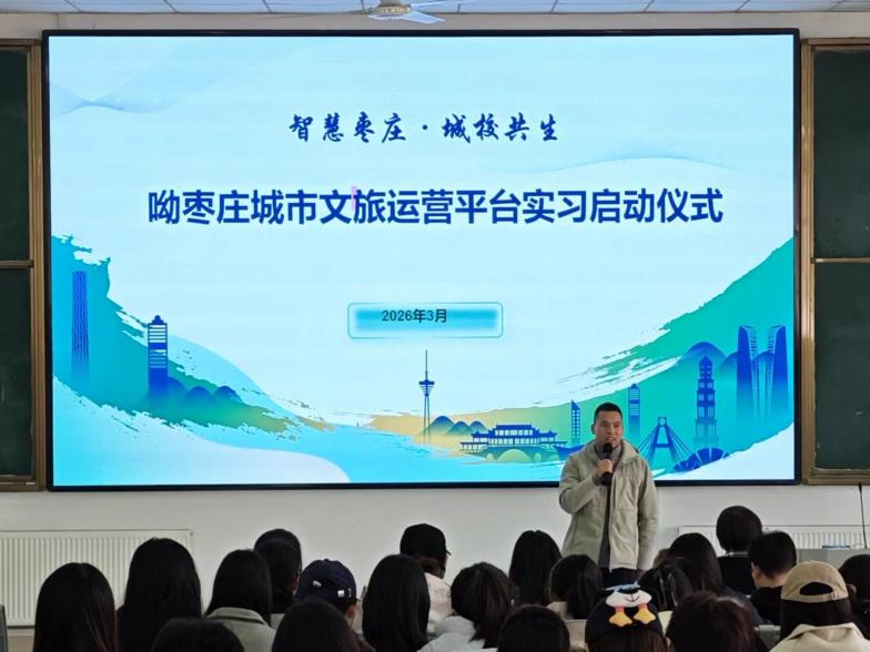 2026年3月11日,太阳网集团tcy8722联合山东文旅集团数字未来发展有限公司共同打造的“呦枣庄”城市文旅运营平台实习启动仪式,在太阳集团tcy8722崇德楼顺利举行。学院党委副书记韩建敏等领导及教师代表,山东文旅集团数字未来发展有限公司业务运营中心总经理李海涛等企业代表,与我院83名实习学子齐聚一堂,共同开启政校企产教融合赋能枣庄文旅发展的全新实践,彰显学院“扎根地方、服务社会”的办学初心与使命担当。