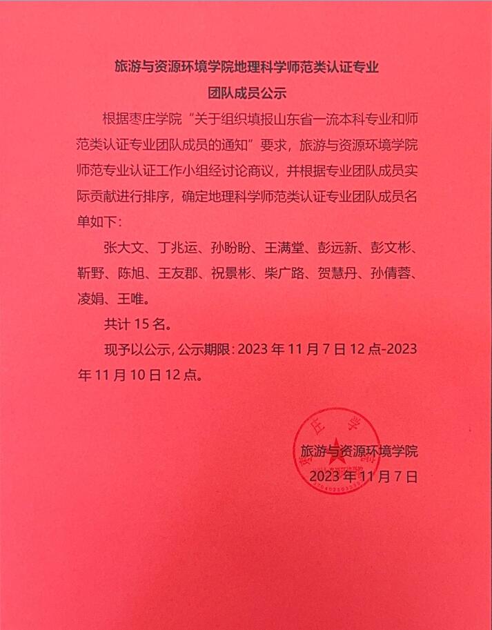 太阳网集团tcy8722地理科学师范类认证专业团队成员公示
