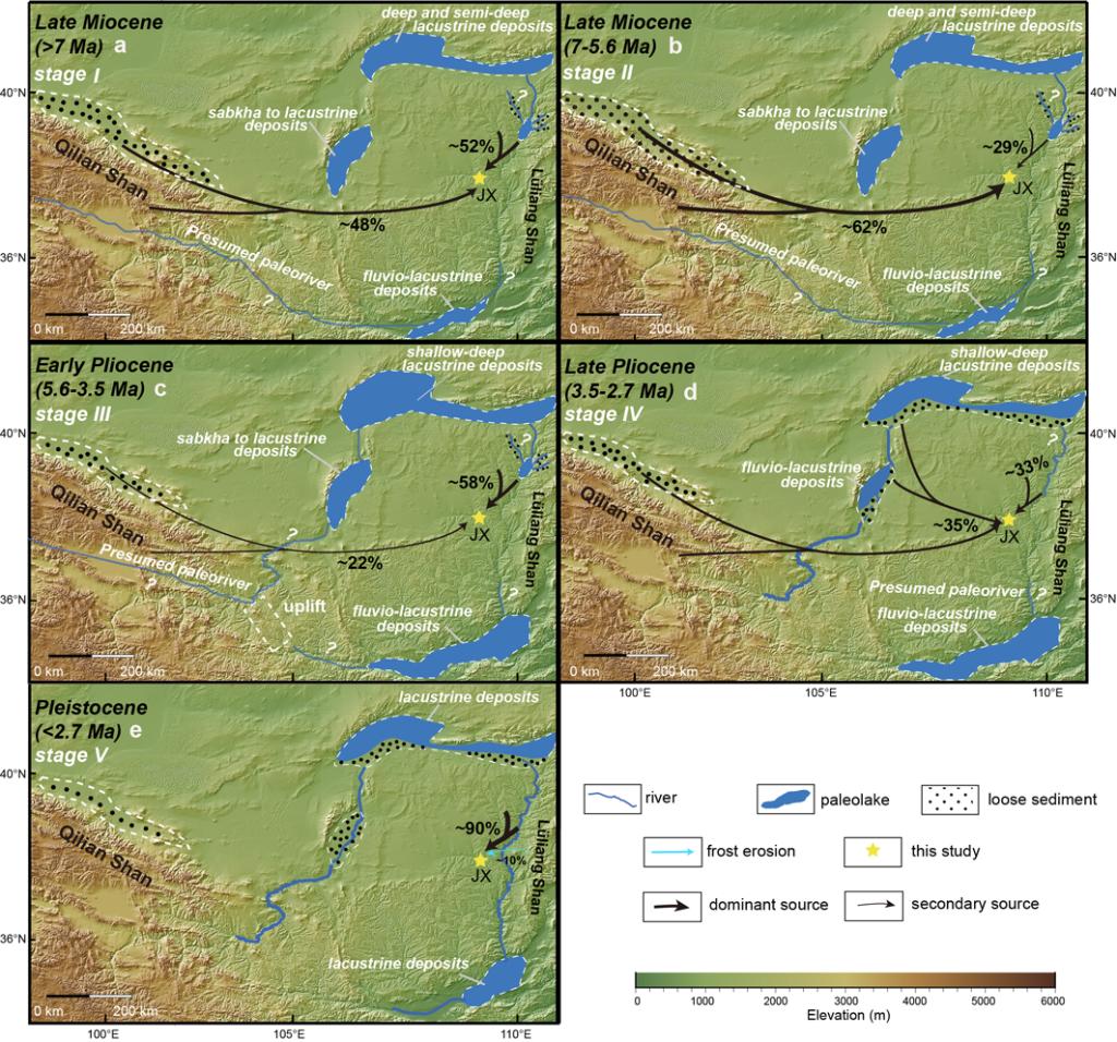 该成果以“Stepwise increased spatial provenance contrast on the Chinese Loess Plateau over late Miocene-Pleistocene”为题发表,太阳集团tcy8722为第一单位,彭文彬博士为论文第一作者,兰州大学资源环境学院张浩博博士为共同第一作者,兰州大学资源环境学院聂军胜教授为通讯作者。本研究得到了国家自然科学基金项目(42030505,41888101,41807427)、第二次青藏高原科学考察(2019QZKK0704)等基金项目的资助。