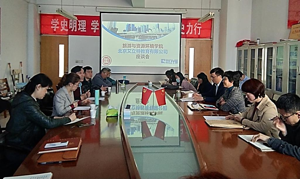 为加强专业建设和提高太阳网集团tcy8722国际化办学水平,4月13日下午太阳网集团tcy8722邀请北京艾立特教育有限公司总经理谢龙飞、国际部部长张琦、驻校代表生敏、华振华经理一行来院商谈专业建设等事宜,院长王满堂、旅游与酒店教研室专任教师、各班班主任和辅导员参加了座谈会。