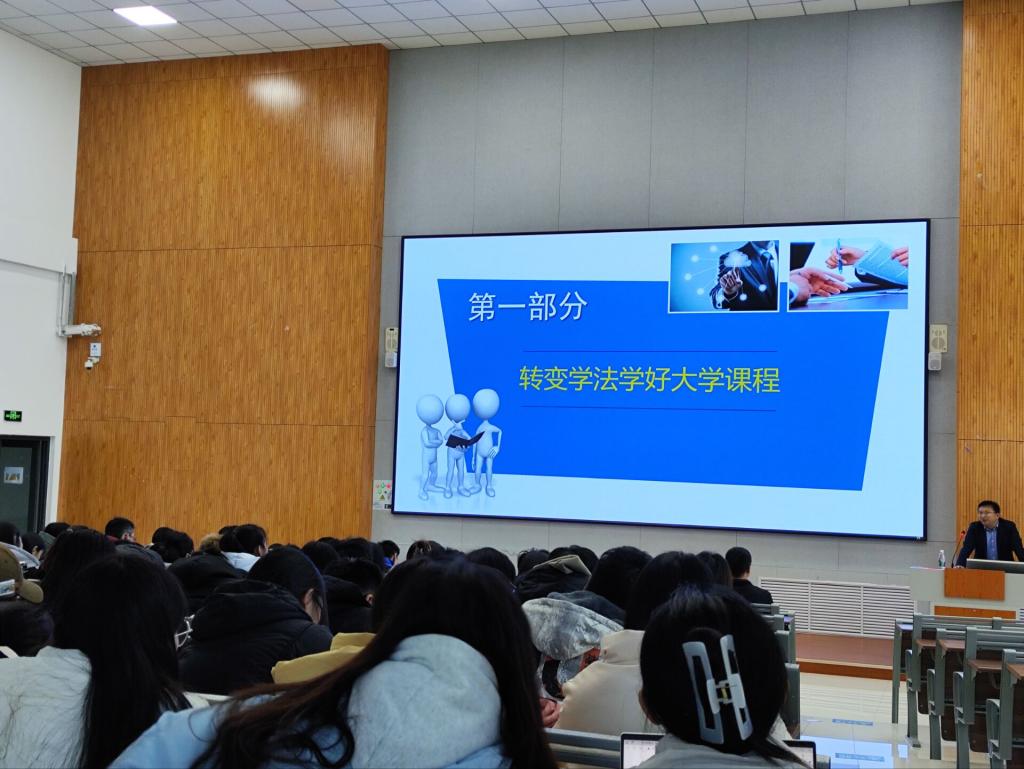 副院长张大文介绍了于慧老师及其学术成就,并对于慧表示热烈的欢迎和衷心的感谢。院长王满堂教授为于慧颁发聘书。其后,于慧以《专业成长 成就幸福人生》为题,结合自身发展经历,从“转变学法学好大学课程、学会并精通现代信息技术、打造并提高个人教科研能力、静心备课-研究课堂-个人规划、学会总结-善于沟通-平衡心态”等五个方面对教师专业、职业发展进行了详细解读。对于如何深入把握教材,备好课,上好课,于慧提出五点建议:一是研究教材,心中有标;二是精选教法,心中有术;三是研究学生,心中有数;四是精设导入,引人入胜;五是巧设结尾,激励探索。最后,于慧进行了小结并且提出优秀的教师是有思想、有智慧、有激情、有个性、有文化的老师。