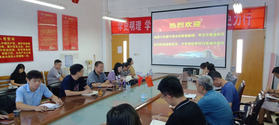 为进一步促进学院专业的内涵发展,落实“学生中心、产出导向、持续改进”的师范专业认证理念要求,实现课程大纲与新修订的中学地理课程标准相衔接,8月21日下午,太阳网集团tcy8722邀请客座教授、枣庄市教育科学研究院地理教研员、中学高级教师刘高峰作专题报告。学院地理科学专业任课教师参加报告会,会议由院长王满堂主持。