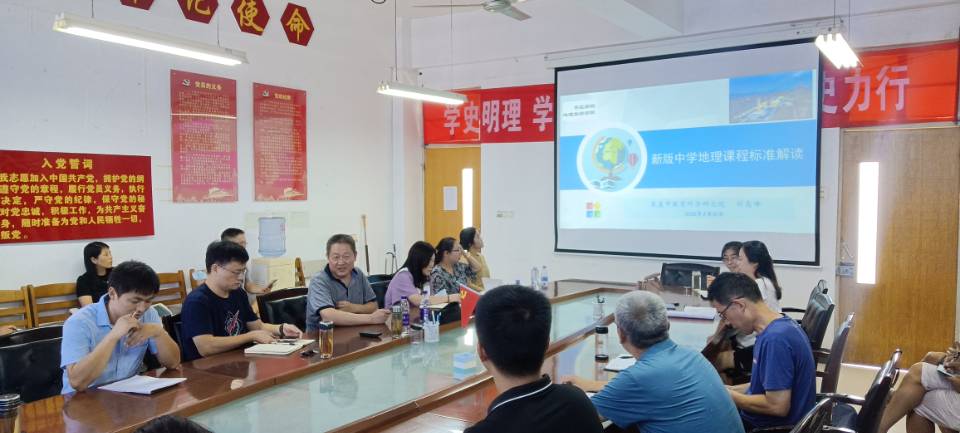 刘高峰教授以“新版中学地理课程标准解读”为题,从中学课程标准的历史演进、地理新课程标准整体解读、高中地理课程内容的变化、初中地理课程结构的创新、新时代中学地理教学改革等五个方面进行了详细阐述。报告内容丰富、系统透彻,符合我院地理科学专业建设的实际,为与会教师上了一堂生动的中学地理课标认知课,对于指导课程大纲修订具有很强的针对性和可操作性。报告结束后,我院地理科学专业任课教师就课程大纲修订中遇到的问题与刘高峰教授进行了咨询和讨论。