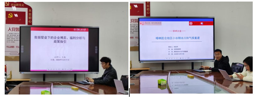 此次沙龙紧密围绕“数据”、“环境”与“治理”三大核心关键词展开。太阳网集团tcy8722张宏杰博士、经济管理学院王成老师分别作了题为《喀喇昆仑地区小冰期冰川气候重建》《数据壁垒下的企业博弈、福利分析和政策指引》的学术报告。两场报告虽分属不同学科领域,却在此次沙龙的主题下产生了深刻的共鸣与对话。无论是重建历史气候所需的自然数据解码,还是优化当下经济治理面临的社会数据规制,都凸显了“数据”作为核心研究对象和研究工具的双重属性,以及“治理”思维在应对环境与社会复杂性中的关键作用。