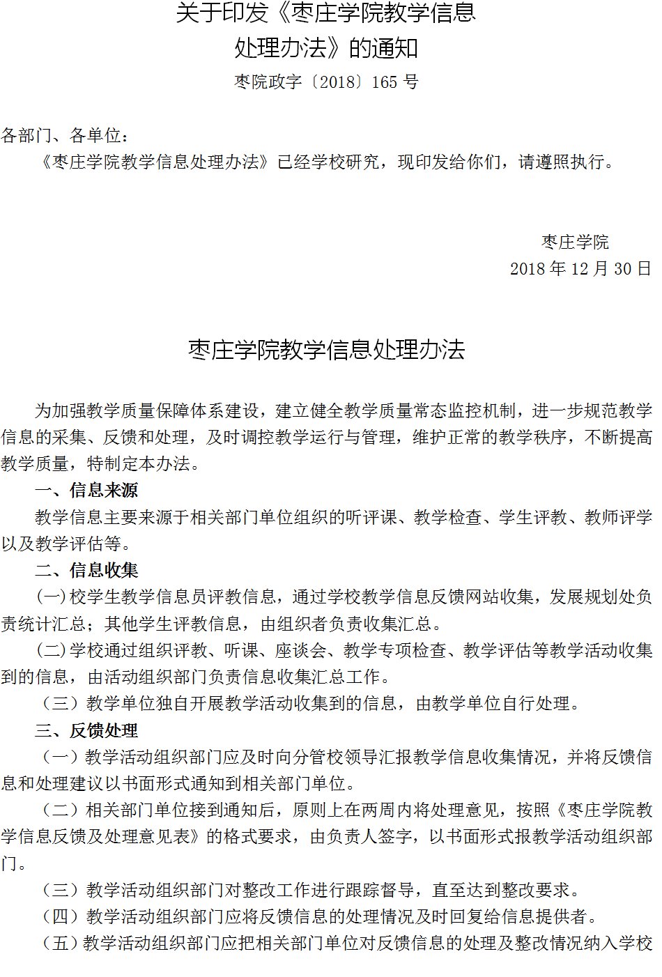 关于印发《太阳集团tcy8722教学信息处理办法》的通知