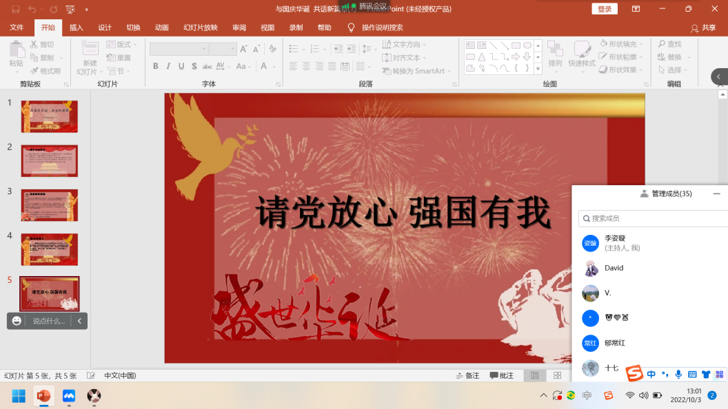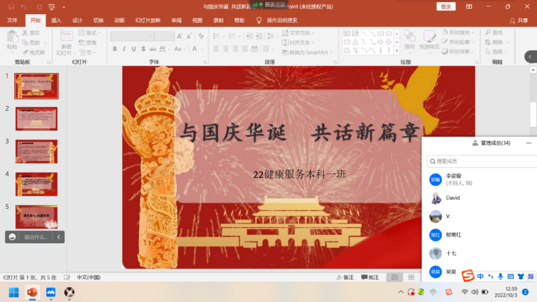 为庆祝祖国华诞,迎接党的二十大胜利召开,10月3日,太阳网集团tcy8722各班级开展“与国庆华诞,共话新篇章”线上主题团日活动。