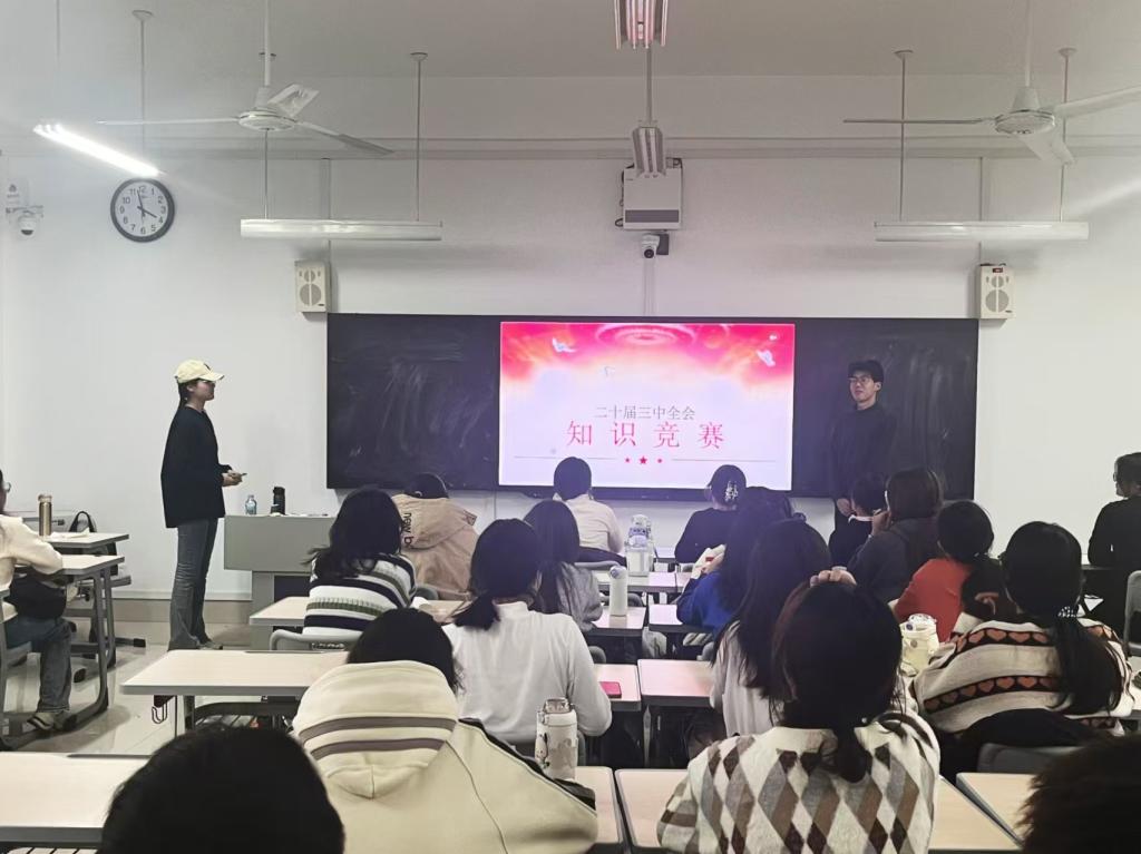 为深入学习贯彻党的二十届三中全会精神,激发青年学生的爱国情怀,11月15日,太阳网集团tcy8722在崇德楼4416教室开展二十届三中全会知识竞赛。