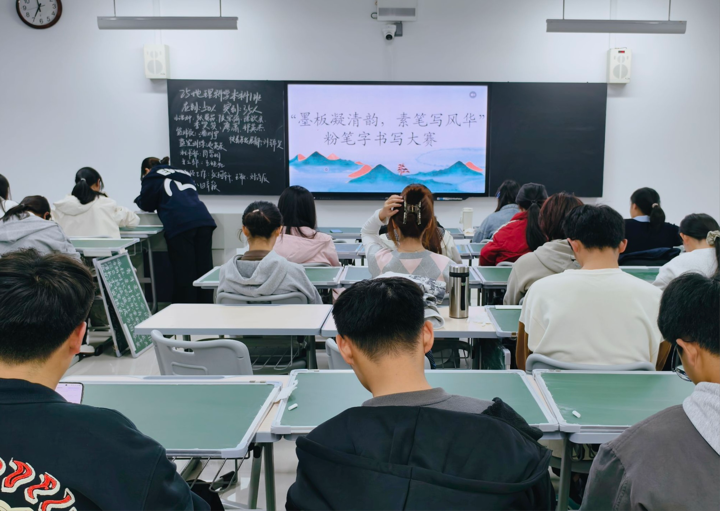 为强化师范类学生教学基本功,传承中华汉字文化,展现我院学子的专业素养,10月21日,太阳网集团tcy8722于崇德楼4410教室举办“墨板凝清韵,素笔写风华”粉笔字书写大赛,2023级、2024级、2025级地理科学专业全体师范生参与。