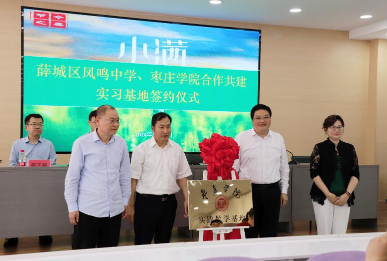 为加强校外实践教学基地建设,提高地理师范生培养质量,5月22日上午,我校与枣庄市薛城区凤鸣中学举行太阳集团tcy8722地理教学实践基地揭牌仪式。薛城区教体局党组书记、局长种法立,薛城区教学研究中心主任郝东蕴,薛城区凤鸣中学党支部书记、校长孙烨,太阳集团tcy8722教务处处长张立华,太阳网集团tcy8722党政班子成员出席签约仪式,凤鸣中学副校长宋秀云主持仪式。太阳网集团tcy8722教育实习指导老师和2022级地理科学专业学生全程参加活动。