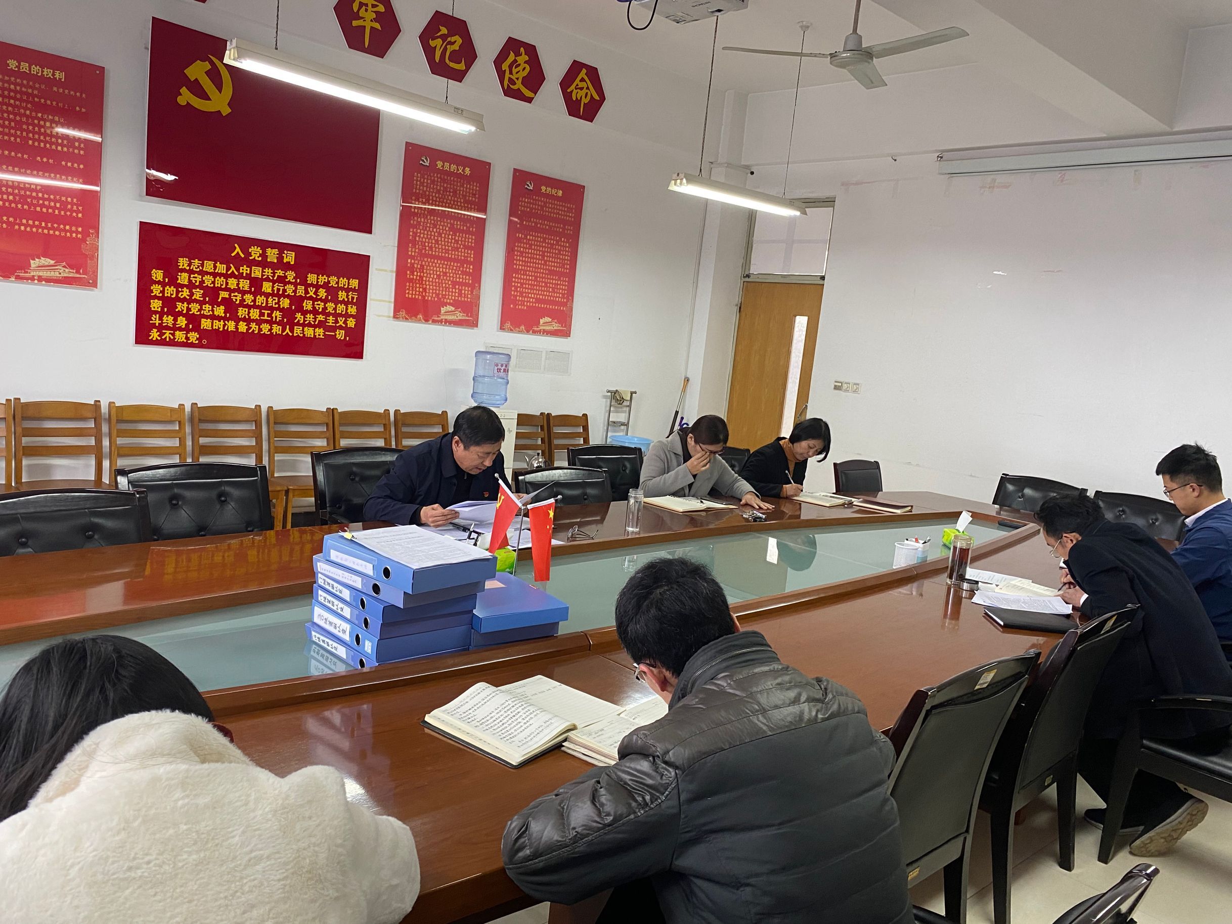 3月19日上午,院党总支理论学习中心组在理工楼2514党员活动室集中学习《中国共产党章程》。院党总支书记陆德国领学并讲话,学院党总支理论学习中心组全体成员参加学习。