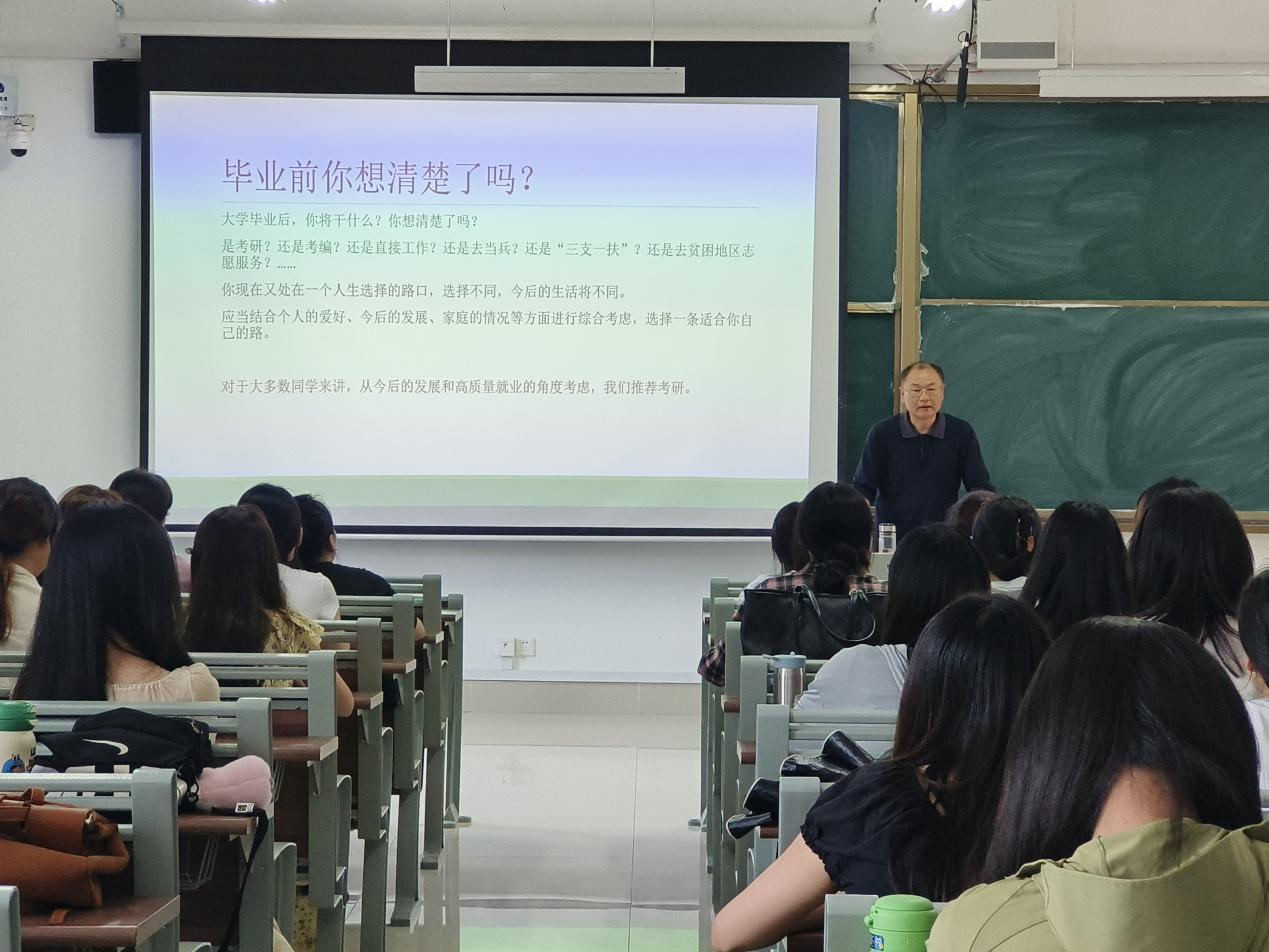 李中军分别从考研的必要性考研基础知识、2024届学生考研总结、如何选择一志愿学校、思考和想法五个方面向同学们讲解当前旅游与酒店专业的考研现状。会上,李中军强调了考研对于个人学术发展和职业规划的重要性,并指出随着旅游与酒店行业的蓬勃发展,当今社会对高素质、高层次人才的需求日益旺盛。李中军指出,考研的关键在于学好英语,鼓励同学们要有恒心和毅力进行各科目的复习,考研不仅仅是对知识的检验,更是对心态和毅力的考验,并鼓励同学们坚定信念,以积极的心态面对考研路上的挑战。