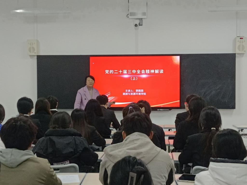 《党的二十届三中全会精神解读》主题课程由我院团委书记邵园园主讲,主讲人紧扣主题,带领同学们深入学习习近平总书记在党的二十届三中全会上的重要讲话,引导青年学生深入学习领会党的二十届三中全会精神,领悟“两个确立”的决定性意义,进一步增强“四个意识”、坚定“四个自信”、做到“两个维护”,鼓励广大青年学子坚定理想信念,勇做走在时代前列的奋进者、开拓者、奉献者,为实现中华民族伟大复兴的中国梦不懈奋斗。