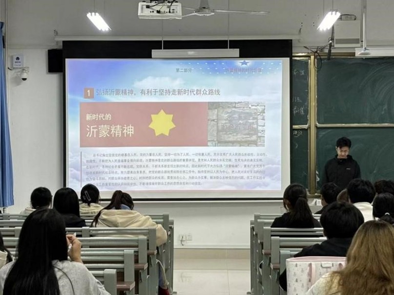 《弘扬沂蒙精神,不忘青马工程初心》主题课程由我院团学干部王璐璟主讲。主讲人围绕“沂蒙精神的形成背景、基本内涵、时代价值及新时代如何传承”四个方面展开宣讲,通过讲述革命年代沂蒙人民英勇奋斗的真实故事,生动展现了沂蒙精神“党群同心、军民情深、水乳交融、生死与共”的丰富内涵,使同学们深刻感受到历史的厚重与家国情怀的深远。