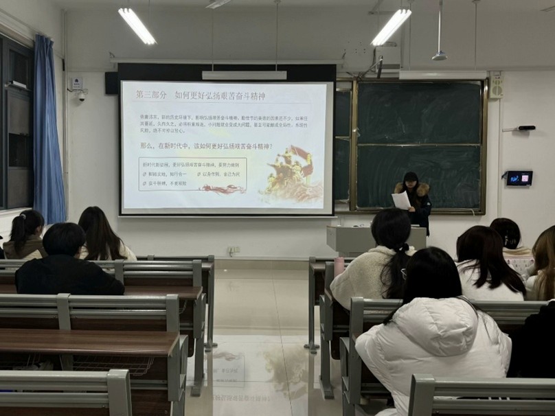 《新时代 新征程,弘扬艰苦奋斗精神》主题课程由我院团学干部祝贺主讲。本次课程旨在以英雄故事激励学生发扬吃苦奋斗精神,进一步提升青马班学员的素质。主讲人从“艰苦奋斗”“顽强奋斗”“接续奋斗”“团结奋斗”四个方面入手,为学员们开启了一场关于奋斗意义的探索之旅。通过深入剖析不同奋斗的意义,青马班学员们深刻领悟到不同奋斗所承载的价值,明确了自己的目标和方向。