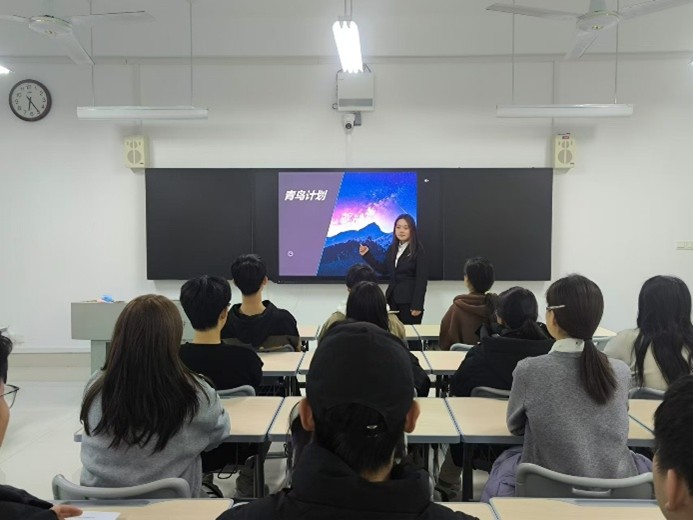 活动伊始,主讲人借助精心制作的PPT,深入解读“青鸟计划”的内涵与意义,详细讲解“青鸟计划”的报名流程、岗位要求以及相关扶持政策,帮助同学们扫清参与障碍,引导学生对青鸟计划获得系统、全面的了解。同时,主讲人结合自身经历,采取互动深化认识的形式,分享在“青鸟计划”平台上的求职经验、实习工作的收获与成长,更好的激发学生的参与积极性。主讲人强调,青鸟计划对学生在职业发展、个人成长等多方面具有显著的积极作用,同学们要积极参与青鸟计划,投身社会实践,在服务社会中彰显人生价值。