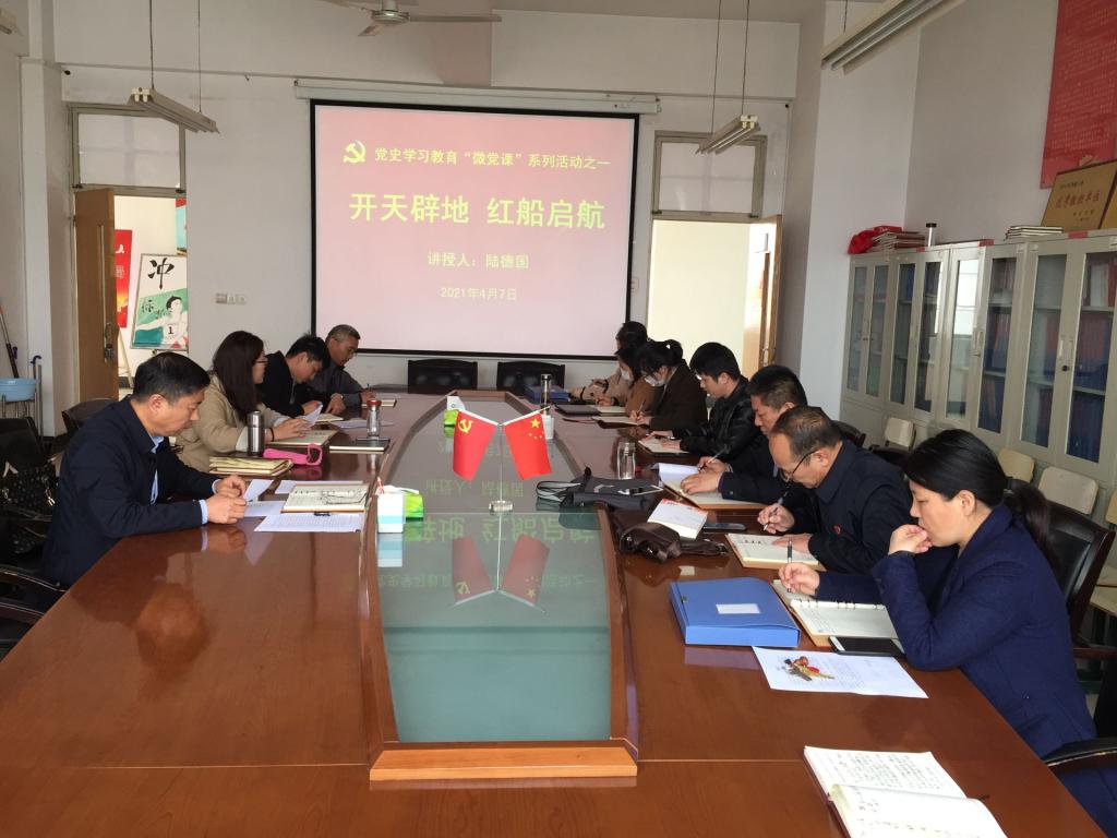 4月7日下午,太阳网集团tcy8722党总支教工第一党支部在党员活动室开展学党史“微党课”活动。第一讲由学院党总支书记陆德国以《开天辟地、红船启航》为题,从“一大”的历史背景、成立的经过及历史意义等方面逐条讲述。