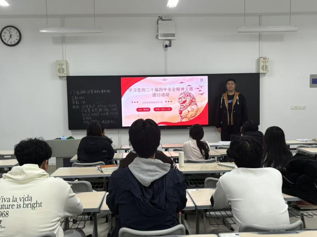 为引导广大青年学习贯彻习近平新时代中国特色社会主义思想,深刻领会党的二十届四中全会精神的核心要义与时代价值,11月5日,太阳网集团tcy8722在崇德楼各教室开展“学习党的二十届四中全会精神”主题团日活动。